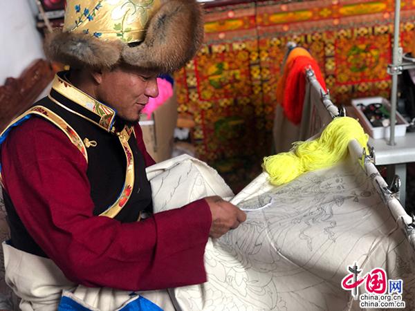 “平措次仁學了8年刺繡,是我們村唯一會刺繡的人,他的手藝非常好,繡的經幡很有市場。”索南央吉告訴記者,平措次仁的家就是他的小作坊,所有的東西都擺在家里,空間很狹小。為了幫助平措次仁創新產品形態、搭建空間平臺,索南央吉聯系了江白,對其進行一對一幫扶。