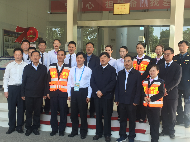 交通運輸部副部長劉小明(左四)與湖北交通系統(tǒng)干部職工合影留念(央廣網(wǎng)發(fā) 詹楓 攝)