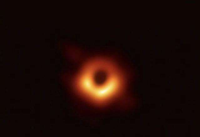 2019年4月10日,包括中國在內(nèi),全球多地天文學(xué)家同步公布了“事件視界望遠鏡”(EHT)項目的第一項重大成果:人類有史以來獲得首張黑洞照片。該黑洞位于室女座一個巨橢圓星系M87的中心,距離地球5500萬光年,質(zhì)量約為太陽的65億倍。它的核心區(qū)域存在一個陰影,周圍環(huán)繞一個新月狀光環(huán)。