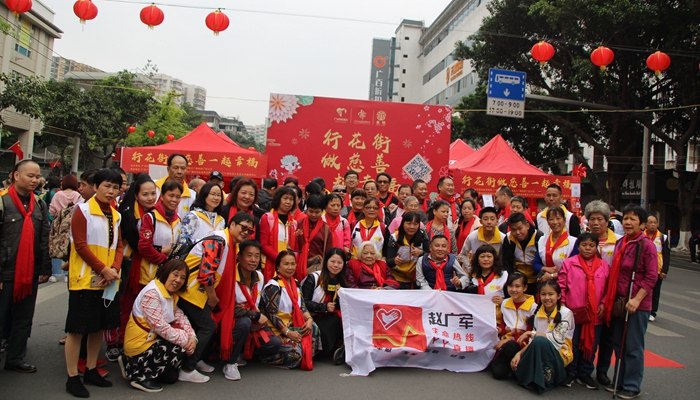 “行花街”是廣州的方言,是指“逛花市”,是廣州年宵活動中非常重要的一環。今天上午,趙廣軍生命熱線協會等組織聯合開展“攜手迎春滿歡樂”活動,陪伴長者和視障人士逛花市。20多名老人和50名視障人士,在義工們的陪伴下,暢游花市。他們中年紀最大的梁炎明老伯已經98歲高齡,最年輕的也有60多歲。