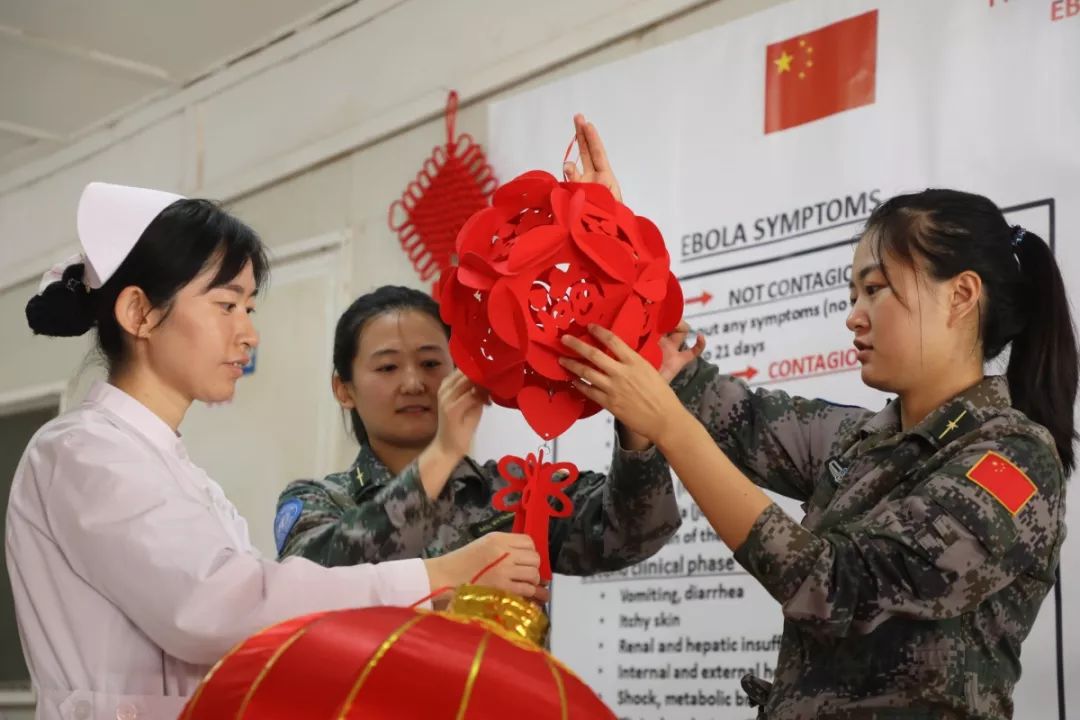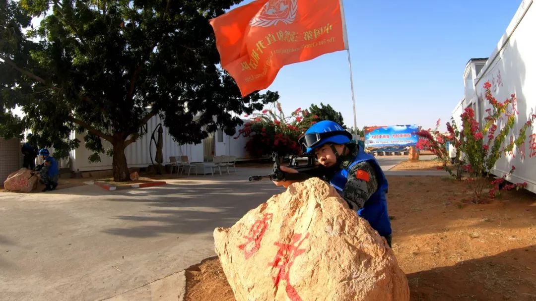 天剛亮,維和官兵便從掛上了節日燈籠的營區出發