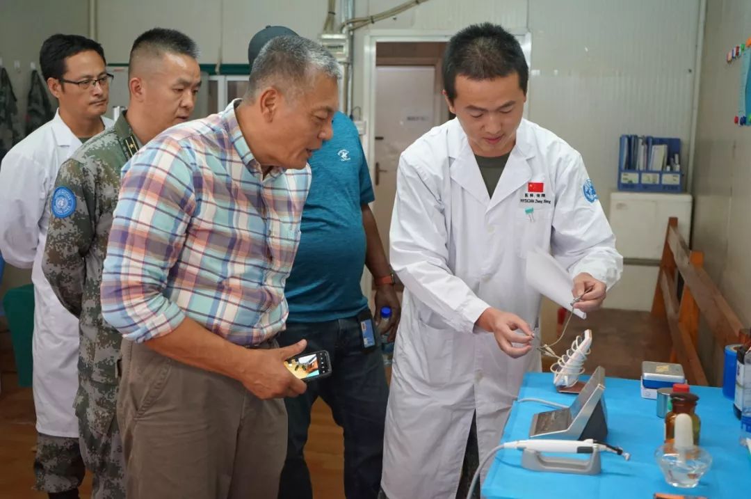右腿腫脹的聯馬團安保部門工作人員做檢查