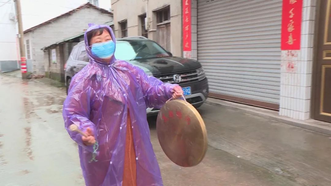 一大早,碧湖鎮缸窯村村監會主任夏蓮嬌就手拎銅鑼,將防疫知識通過方言喊村的方式,宣傳到村里的家家戶戶。