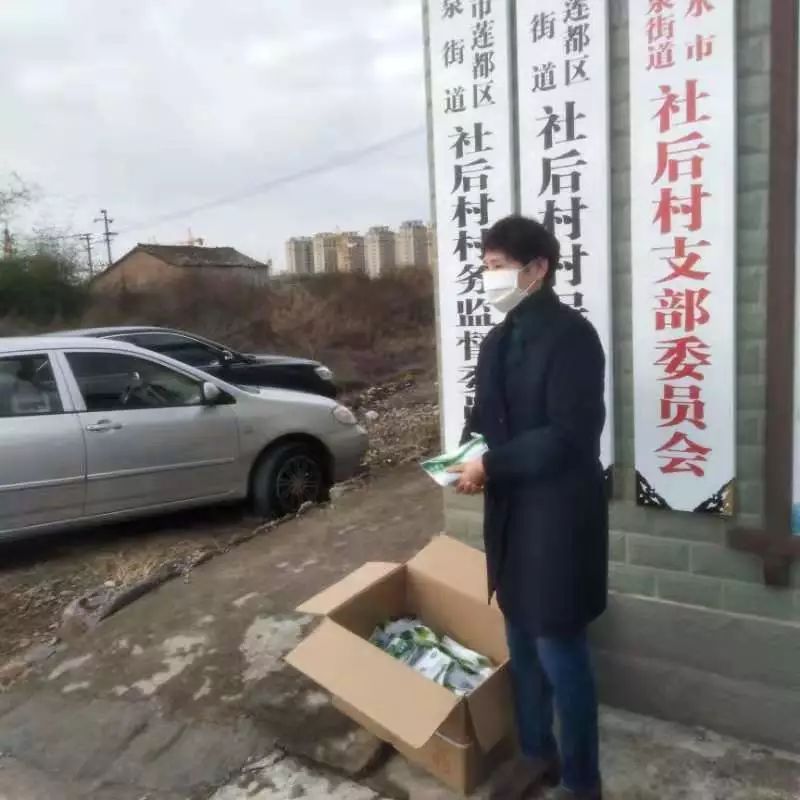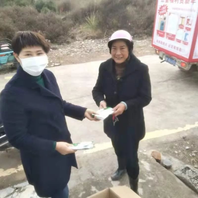 全國巾幗建功標兵、麗水市女企業家協會副會長、社后村村民主任婦聯主席吳美鳳自費購買口罩向路過的村民發放。