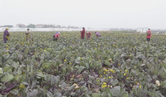 最近一段時(shí)間,每天早晨,武漢市蔡甸區(qū)一家蔬菜種植基地里都是一派忙碌的景象,300多畝的菜薹園,幾十位工人正埋頭采摘。