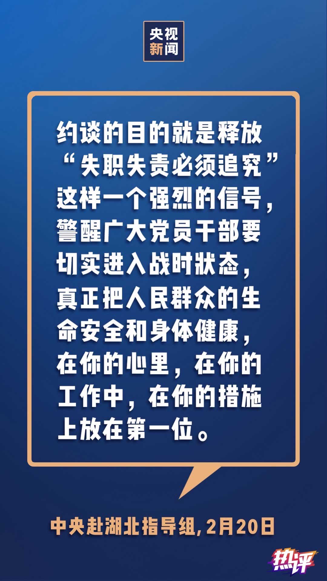 四是直接督促檢查一線黨政干部在疫情防控中的作為。既要進(jìn)行指導(dǎo),也要加強(qiáng)督查——這是習(xí)近平總書(shū)記對(duì)中央指導(dǎo)組提出的要求。連日來(lái),中央指導(dǎo)組深入一線督查、督辦,發(fā)現(xiàn)問(wèn)題后對(duì)有關(guān)市區(qū)負(fù)責(zé)人開(kāi)展約談并曝光,還深入核查解決群眾反映的突出問(wèn)題。之前公眾普遍關(guān)注的黃岡“一問(wèn)三不知”干部被問(wèn)責(zé)、武漢市區(qū)領(lǐng)導(dǎo)因轉(zhuǎn)運(yùn)病人不力被約談等,都在此列。