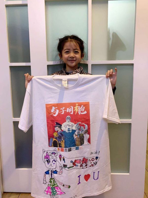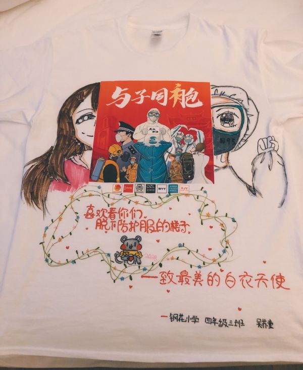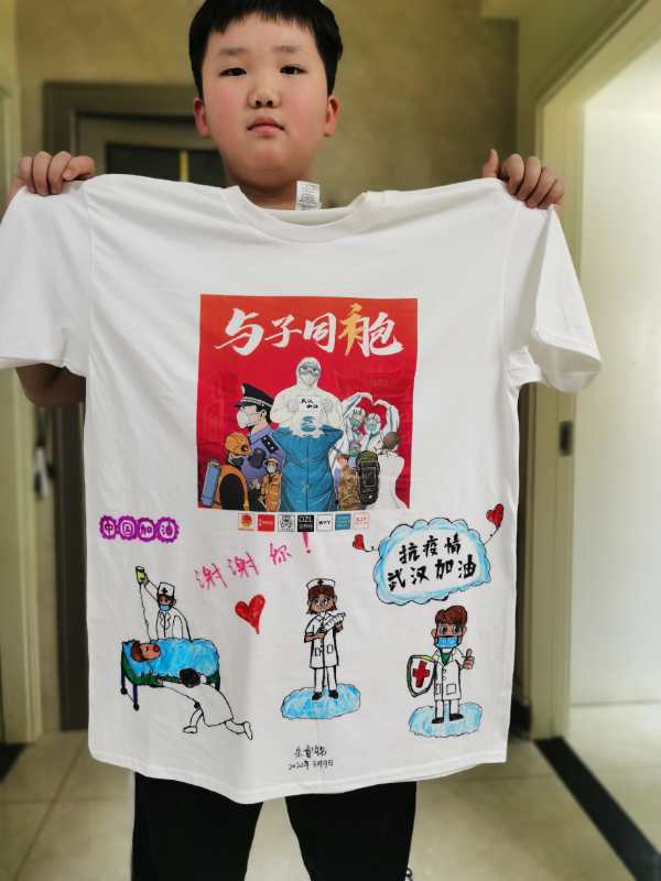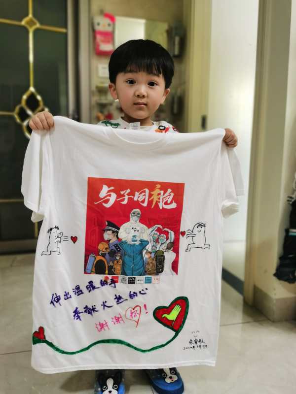 “醫(yī)護人員拿到文化衫后,都非常高興,她們說小朋友畫得太好看了。”徐敬陽說。
