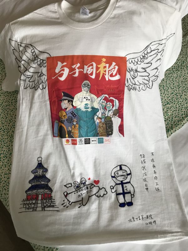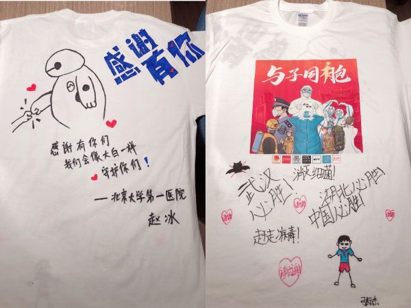 武漢志愿者在T恤上,為醫(yī)護人員涂鴉 徐敬陽 供圖