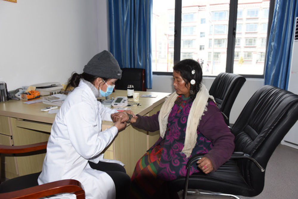 在西藏山南市貢嘎縣森布日安置點,醫生為搬遷群眾看。1月12日攝)。 新華社記者 田金文 攝