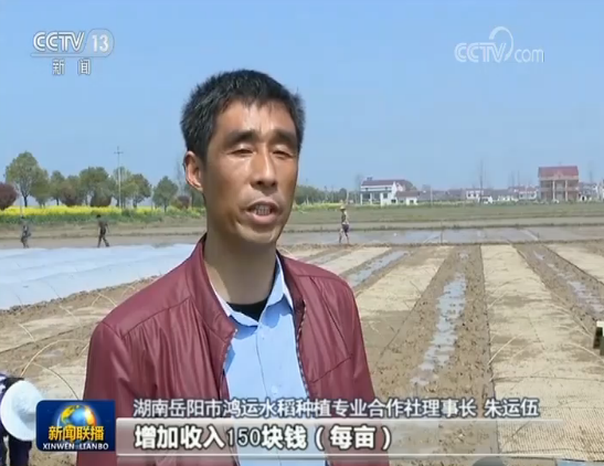 湖南岳陽(yáng)市鴻運(yùn)水稻種植專業(yè)合作社理事長(zhǎng) 朱運(yùn)伍:我們每畝地增產(chǎn)120斤,增加收入150元(每畝)。