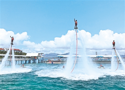 端午假期,三亞上演海上觀光表演項(xiàng)目。 經(jīng)濟(jì)日?qǐng)?bào)-中國(guó)經(jīng)濟(jì)網(wǎng)記者 潘世鵬攝