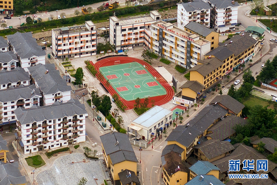 航拍中益小學的環形塑膠運動場。新華網 朱清 攝