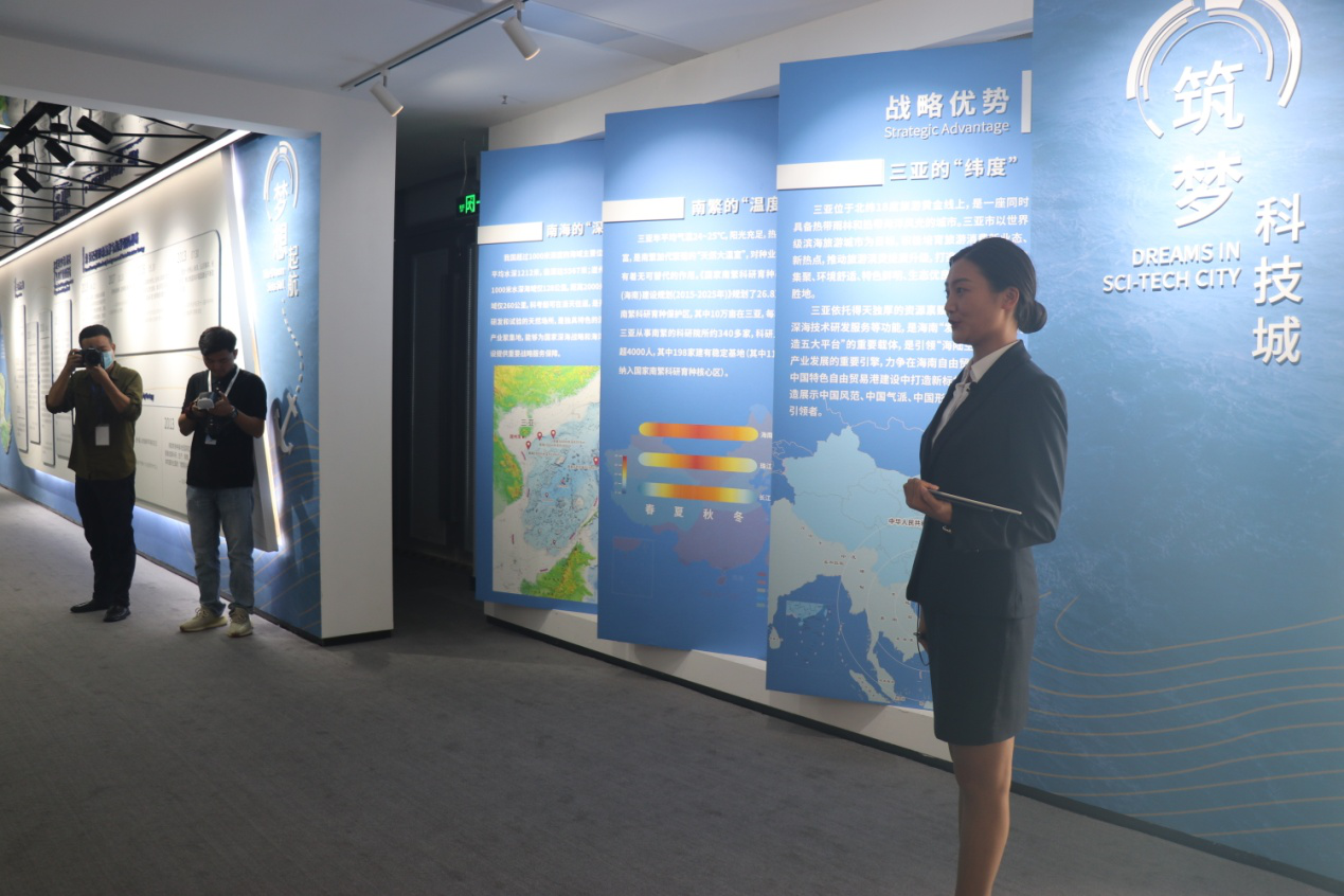 26日下午,采訪團走進三亞崖州灣科技城,參觀崖州灣科技城規劃展示中心和上海交通大學三亞崖州灣深海科技研究院,了解崖州灣科技城總體規劃情況,感受自貿港建設下海南重點園區的速度和溫度。