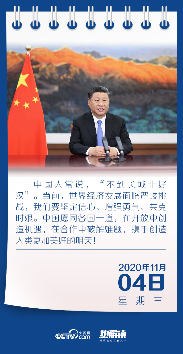 “本屆進博會是在特殊時期舉辦的。突如其來的新冠肺炎疫情給各國帶來嚴重沖擊,也給世界經濟帶來重創!苯涃Q摩擦此起彼伏,保護主義關門筑墻,世界經濟在不確定性中艱難前行。在此大背景下,習近平主席引用了一句中國人家喻戶曉的詩句向世界宣示:“‘不到長城非好漢’。當前,世界經濟發展面臨嚴峻挑戰,我們要堅定信心、增強勇氣、共克時艱!