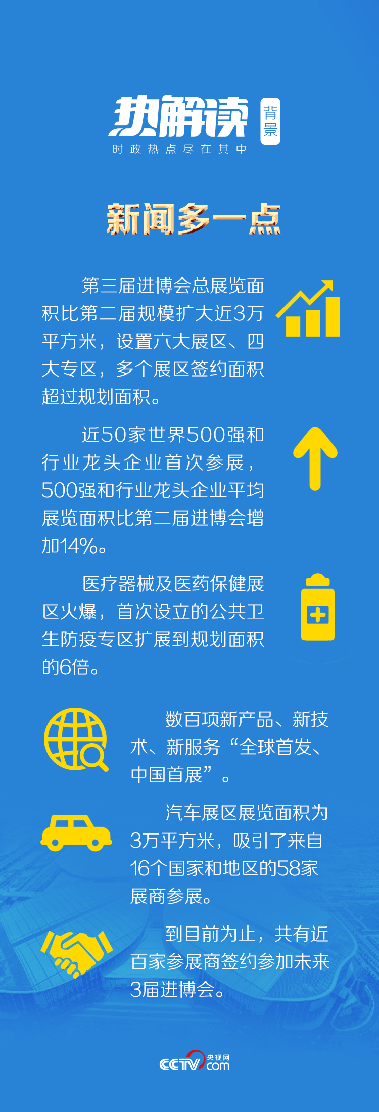 在此背景下舉行的第三屆中國國際進口博覽會,老朋友堅定續約,新朋友紛至沓來,展覽面積又擴大了近3萬平方米。能級和水平更高,專業化辦展方向更凸顯,參展參會更便利,服務保障更精細,溢出效應更大。