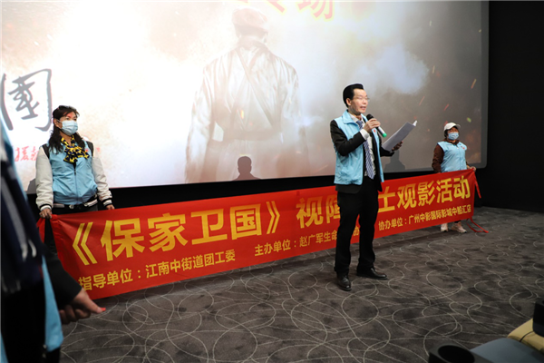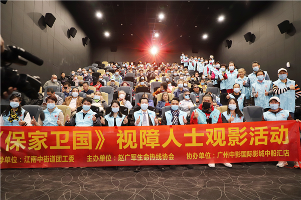 央廣網廣州12月5日消息(記者傅曉勤 通訊員羅宙綸 梁衛國)12月5日是國際志愿者日,在國際志愿者日到來之際,4日和5日,在廣州市殘疾人基金會、廣州江南中街團工委指導下,趙廣軍生命熱線協會攜手廣州中影國際影城中船匯店聯合開展連續兩天的《保家衛國》紀錄影片免費觀影活動,并組織50多名志愿者陪同80多名視障人士,用“心”看電影,共抒愛國情。