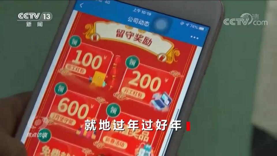 異地務工人員范海亮說:“在法定假日工作規定的三倍工資之外,額外每天還給予200元的留守獎勵,大年三十當天12到16道菜不等,有拔河比賽,還有抽獎活動。因為留守過年,公司也比較人性化,抽了一些獎品幫我們郵寄回家,替自己盡孝心。”
