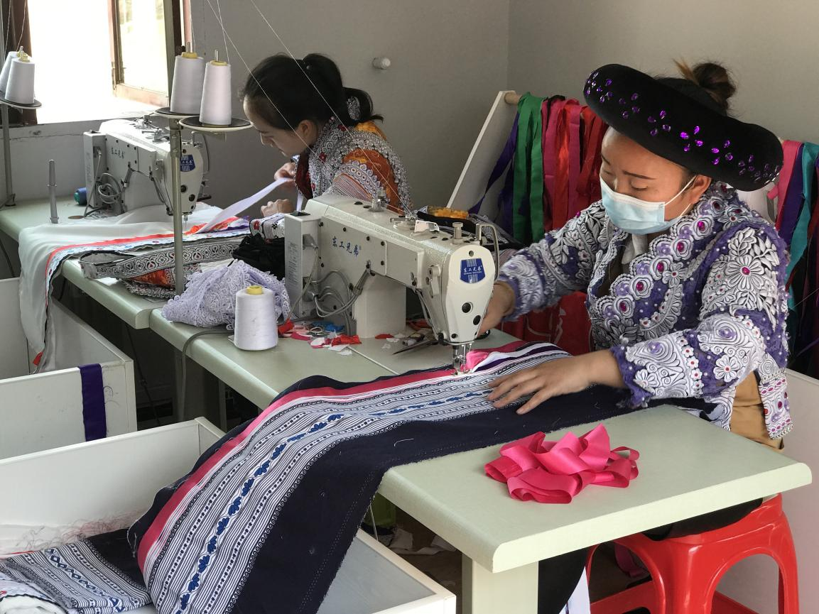 目前,該車間有刺繡車間、縫紉車間、蠟染室、設計師、裁剪室、產品展示間等廠房18間,擁有縫紉機16臺、高速繡花機2臺。解決當地群眾就業30人,其中固定職工25人、臨時工5人。