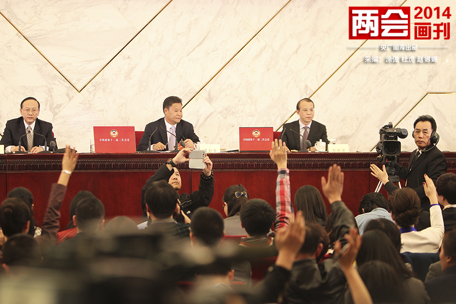 全國政協十二屆二次會議新聞發布會現場記者提問(央廣網記者 杜虎 攝)