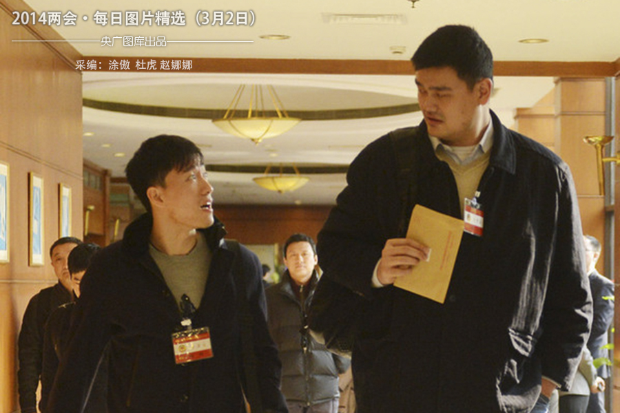 2014年3月2日,上海,政協委員姚明劉翔準備前往北京參加2014年全國政協會議。(圖片來源:東方IC)