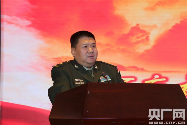 朱德元帥的嫡孫朱和平將軍發(fā)表演講。(王祥林/攝)