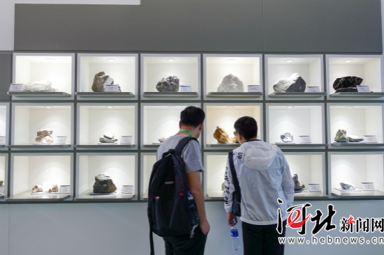 圖為采訪團記者在白石山地質博物館參觀。攝影:趙杰