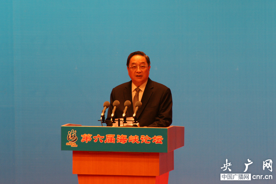 中共中央政治局常委、全國政協主席俞正聲致辭。(央廣網記者時晨攝)
