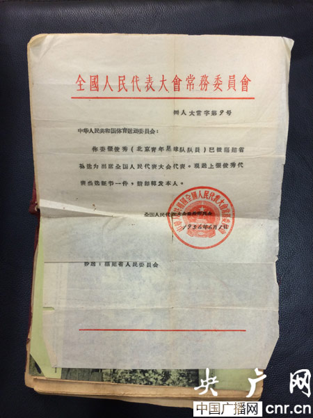 ▲一屆全國(guó)人代會(huì)中唯一的運(yùn)動(dòng)員代表
