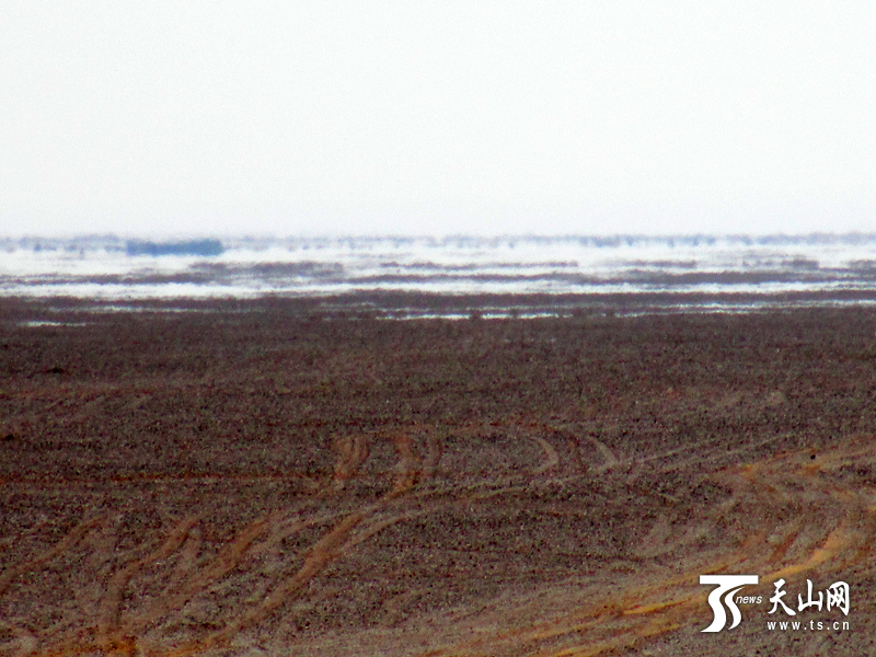 全國(guó)旅游網(wǎng)媒新疆行記者在海市蜃樓觀景臺(tái)上拍完照片,坐上車,向前方海市蜃樓開去。隨著車輛的前行,“湖水”慢慢“退下”,一行人才確定那片誘人的湖是假象。