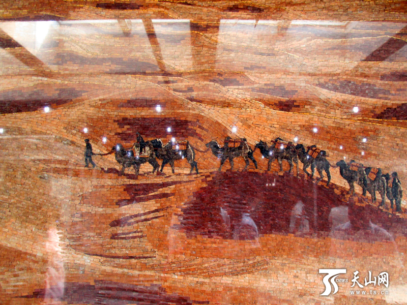 第五屆中亞·新疆石材博覽會開幕展上,用石材制作的畫作。