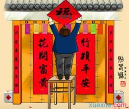 春聯又叫“門對兒”、“春帖”。有人說,春聯的前身跟門神一樣,是桃符。說古時候的人怕“年”,除了放鞭炮嚇唬這個“年”之外,還有一招,就是用桃木刻成人形掛在門框上,讓他當保安——這就是門神啦——神荼、郁壘。
