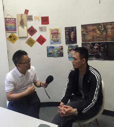 香港舞蹈團首席舞蹈員黃磊接受記者采訪
