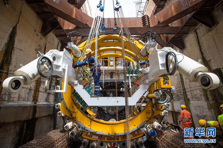 4月30日,在以色列特拉維夫輕軌紅線施工現場,工人在組裝盾構機。中國中鐵旗下子公司與以色列公司組成的聯營體于2015年5月成功中標以色列特拉維夫輕軌紅線項目TBM段西標段。該項目包括6座地下車站、10560米TBM隧道及17條橫通道等工程。項目使用的土壓平衡式盾構機全部由中國制造,盾構機安裝、調試和操作等專業技術工作也都由中方技術人員完成;地鐵隧道使用的混凝土管片也在中方的技術指導下進行生產。截至目前,工程進展順利。新華社記者郭昱攝 圖片來源:新華網