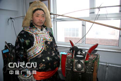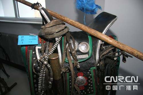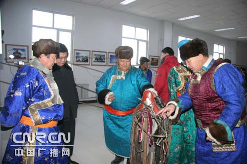 中廣網(wǎng)呼和浩特1月30日消息 (記者阿都?xì)J)千百年來(lái),內(nèi)蒙古大草原孕育出燦爛的民族文化,保護(hù)、傳承一種歷史文化就等于擁有了一個(gè)世界。前不久,在內(nèi)蒙古東烏旗舉辦的第四屆“吉祥·烏珠穆沁”草原冰雪那達(dá)慕期間,這里舉辦了一個(gè)別開(kāi)生面的馬具展覽。展出的馬鞍、馬具用呂、套馬桿等展品都是出自牧民之手。開(kāi)展時(shí)展覽館人頭攢動(dòng),很是吸引觀眾的眼球。