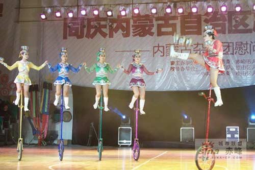 內蒙古雜技團的《五人踢碗》節(jié)目,2001年獲中國首屆“金菊獎”雜技比賽優(yōu)秀節(jié)目獎、最佳服裝設計獎,2004年獲“金獅獎”第六屆全國雜技比賽金獎,2005年獲第二十三屆朝鮮“四月之春”友誼藝術節(jié)金獎,2006年獲第七屆中國武漢國際雜技節(jié)金獎,2007年獲第二十三屆意大利金色馬戲節(jié)金獎和第二十八屆法國“明日”世界雜技節(jié)銀獎。(詠梅)(圖片來源:新浪赤峰 中國文化網)