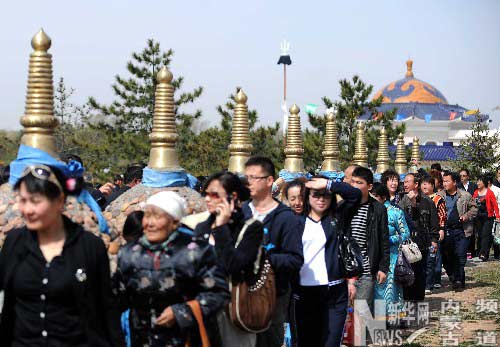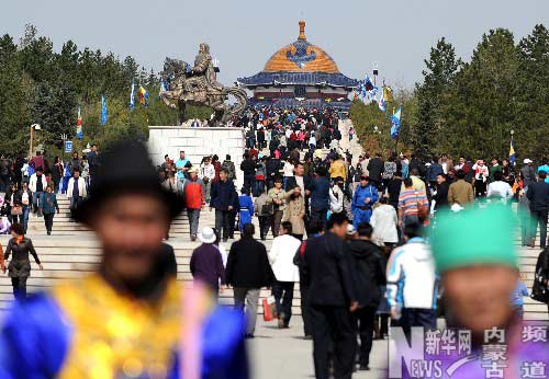 4月26日,作為成吉思汗陵傳統(tǒng)祭祀活動之一的查干蘇魯克大典(春祭)主祭日活動在內(nèi)蒙古自治區(qū)鄂爾多斯市伊金霍洛旗成吉思汗陵舉行。3萬多名祭拜者帶著酥油、磚茶、羊肉等供品前來祭拜。據(jù)介紹,查干蘇魯克大典又稱為“春祭”,是成吉思汗陵一年一度最隆重的祭典活動。每年農(nóng)歷3月17日至24日期間舉行,其中農(nóng)歷3月21日為主祭日。