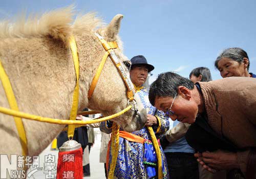 4月26日,一名祭祀者頂觸具有靈性的駿馬,祈禱帶來好運氣
