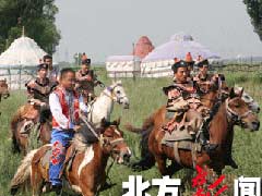 《勇往直前》節目組來到呼和浩特市蒙古風情園錄制節目,歌星林依輪、孫浩和著名演員戴嬌倩作為嘉賓參加錄制,領略了大草原的無窮魅力。
