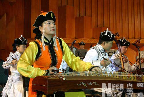 12月10日晚,蒙古國“牧人魂”國家藝術團在呼和浩特舉辦“蒙古旋律”主題音樂會。這是蒙古國樂手用蒙古古箏演奏中國樂曲《梁祝》。 新華社記者李澤兵攝