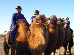 12月13日,阿左旗敖倫布拉格鎮牧民傲云達賴邀請嘎查及周邊牧民舉行了一場別開生面的家庭賽駝大會。
