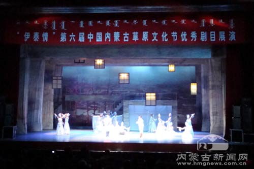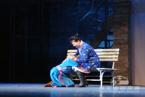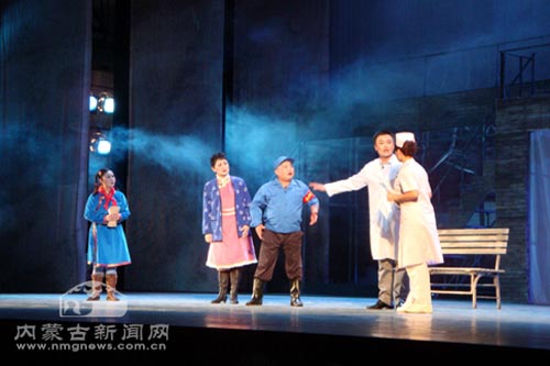 7月9日晚,大型現(xiàn)代漫瀚劇《暖雪》在內(nèi)蒙古人民會(huì)堂進(jìn)行第一場(chǎng)演出。