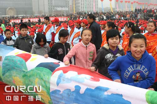 中廣網(wǎng)呼和浩特4月11日消息(記者鄭穎、劉俊霞)4月11日上午,內(nèi)蒙古百名少年兒童在新華廣場進行了主題為“熱愛大自然,體驗生態(tài)游”的繪畫表演,向全場觀眾展示了“熱愛大自然,健康生態(tài)游”的主題繪畫。本次活動也是全國百城旅游宣傳周、2009中國生態(tài)旅游年內(nèi)蒙古生態(tài)游、“美麗的草原我的家”內(nèi)蒙古人游內(nèi)蒙古啟動儀式中的一項。