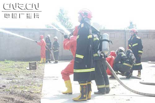 三強化工有限公司始建與2006年7月份,主要以生產經營粉末涂料專用E-12(604)環(huán)氧樹脂、聚丙烯酰胺、甲酸鈉等化工產品的公司。該公司生產經營化工產品范圍較大,屬于消防安全重點單位。上午8時40分,該公司的環(huán)氧氯丙烷儲罐發(fā)生泄露,中隊接到報警后,迅速出動2輛消防水罐車,1輛消防泡沫車,18名指戰(zhàn)員趕赴事發(fā)點。到達現場后,全體指戰(zhàn)員立即進入緊張而有序的戰(zhàn)斗狀態(tài)。演練首先由偵查小組人員通過偵查發(fā)現大量的有毒性化學危險氣體向外泄漏,指揮員立即組織外圍警戒組拉好警戒線,并快速疏散“現場”的圍觀人員,緊接著作戰(zhàn)組利用2臺消防車一干線2支水槍同時向泄漏罐體進行澆水冷卻。救生組對現場因氣體造成傷害的人員進行了轉移。演練按預期計劃圓滿的完成。