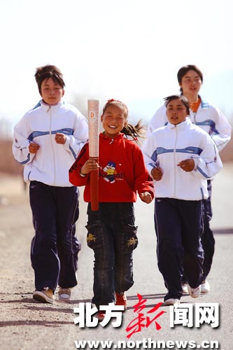 小火炬手奔走在大路上
