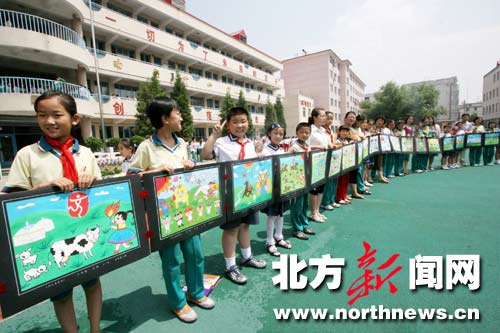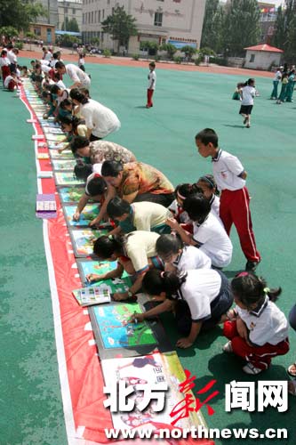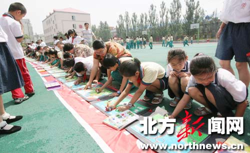 中廣網(wǎng)呼和浩特7月2日消息 為了表達草原兒女喜迎奧運的激動心情,呼和浩特市賽罕區(qū)南門外小學昨日舉辦了“草原兒女迎奧運”繪畫展示活動,孩子們用心地描繪了29幅奧運題材作品,祝福第29屆北京奧運會圓滿成功。