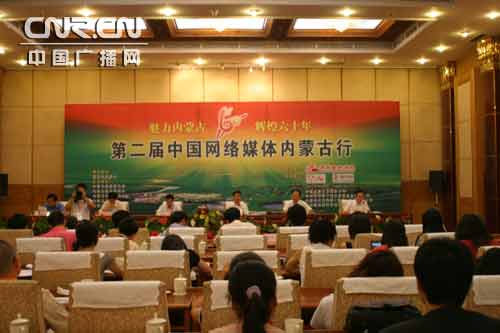 “十五大”以來,內蒙古,發揮優勢,突出特色,使內蒙古的經濟、文化、旅游各方面都取得了飛速發展,2006年內蒙古全部工業增加值比2000年翻了2翻多。今年正值內蒙古自治區成立60周年,全國50多家網絡媒體將通過10余天的行程,對內蒙古進行全方面的報道。東北新聞網的負責人表示,在去年的第一屆網絡媒體內蒙古記者行中他已經感受到了內蒙古發展之快,今年他將繼續用心感受內蒙古,用筆記錄內蒙古,用相機拍攝內蒙古,用鍵盤和鼠標展現內蒙古的輝煌成就。