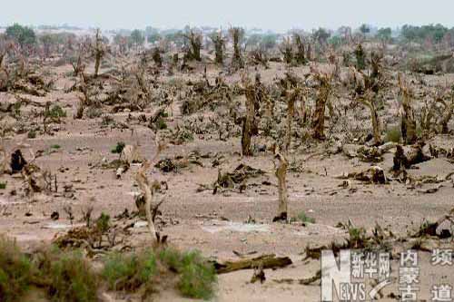 額濟納綠洲南部一片面積達到15平方公里的死亡的胡楊林。(攝影 李欣)