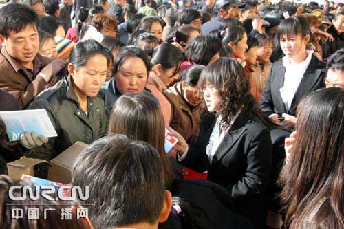 內蒙古黨委宣傳部部長烏蘭向群眾贈送十七大圖書(馬立峰 攝)