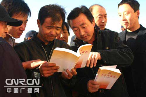 農民爭讀十七大報告讀物(馬立峰 攝)