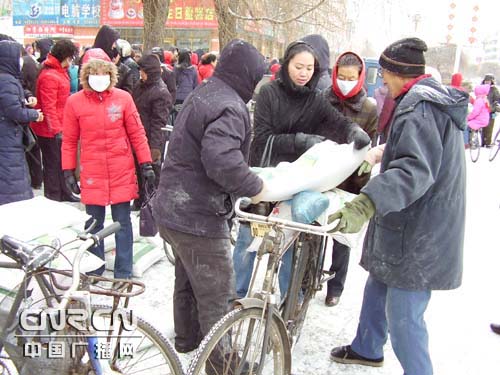 中廣網呼和浩特1月26日消息 (記者阿都欽 通訊員紀明國 張維鑫) 1月25日上午,內蒙古扎蘭屯市寒風凜冽,刺骨穿心。在扎蘭屯市總工會門前人群涌動,熱鬧非凡,350名下崗特困職工每人都領到了二袋餃子面粉。59歲的鐵東街道辦事處五里居居民絲綢廠下崗職工宗聯元領到面粉笑得合不攏嘴。他激動地說:“每年都能得到扎蘭屯市總工會給我們下崗困難職工發放救助面粉,為我們解決了過年包餃子的面粉,市總工會把溫暖送到了我們心坎上。”